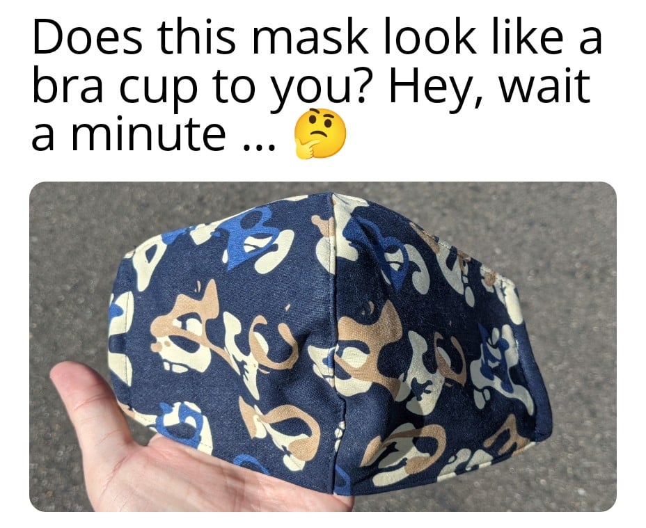 By Rob September 13, 2021 No Comments Mon Sep 13, 2021 01:58 PM Liberal guy flex Styled masks are selling at a kiosk in a mall. I think they bought a bunch of cheap bras, dyed them, and sewed straps into the cups. We’re wearing bras on our faces like silly kids. ADVERTISEMENT: Using the FB2WP Importer Plugin